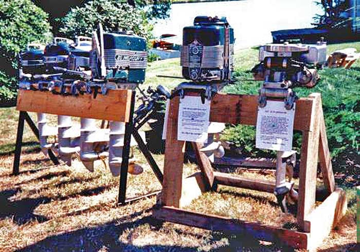 of my Merc motors, from left to right; KB3, KH7 Cruiser, Mark 20, 1949