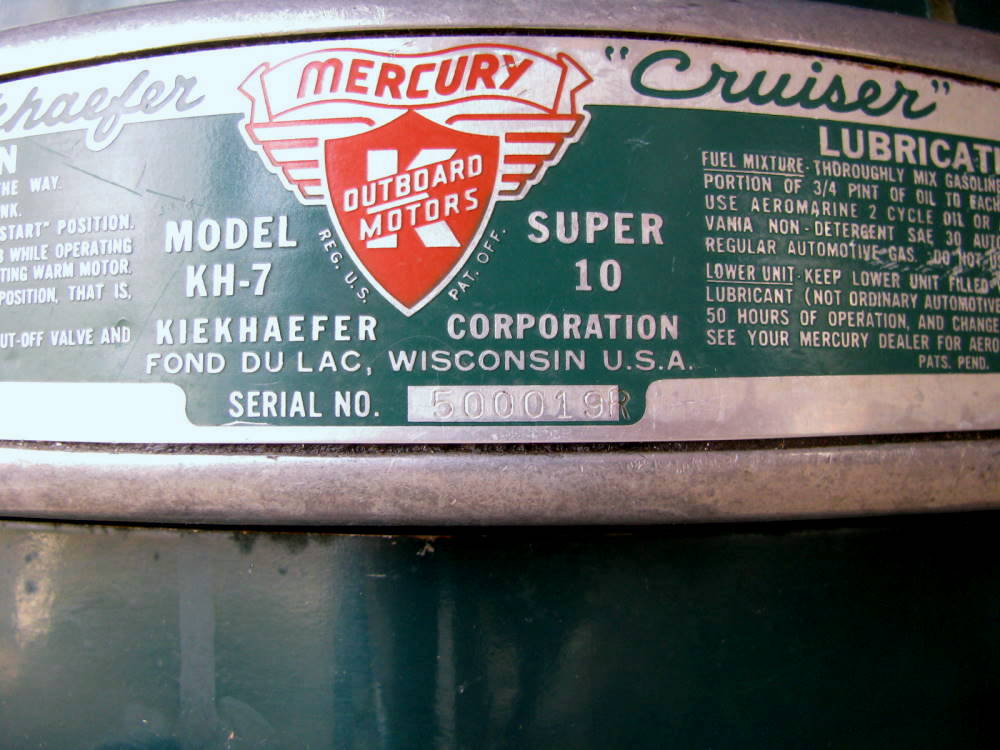 CRUISER WAS BUILT FOR ONLY 1 YEAR, 1952 AND WAS REPLACED WITH THE MARK 20 IN 1953 THE SERIAL NUMBER ON THIS MOTOR WITH AN "R" SUFFIX INDICATES "REFURBISHED" OR "REBUILT" AT THE FACTORY . ADDITIONALLY IT IS THE 7TH PRODUCTION MOTOR, STARTING SERIAL FOR KH7'S IS 500012. SO IT MAY HAVE BEEN USED BY MERCURY AS SOME SORT OF A DEMO MOTOR. B4 YOUR DAD BOUGHT IT THEY REFURBISHED IT TO NEW SPECS. AS BEST WE CAN DETERMINE 8000 SERIAL NUMBERS WERE ALLOTTED TO KH-7'S BUT NOT NECESSARILY USED.
