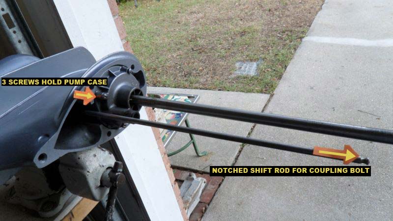 OK, LETS TAKE A LOOK AT THE WATER PUMP. 1ST THING TO DO IS UNCOVER THE SHIFT ROD COUPLER