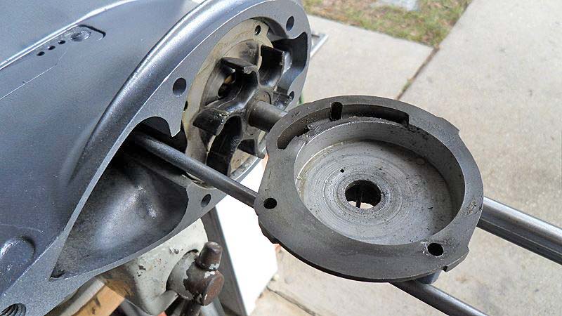 THIS HAS AN ACCEPTABLE IMPELLER BUT THE HOUSING IS WORN EXCESSIVELY FROM RUNNING THRU SAND IN OUR SHALLOW BAYS AND BAYOUS. AS YOU CAN SEE IT IS REALLY EASY TO GET TO AND SERVICE THE WATER PUMP!